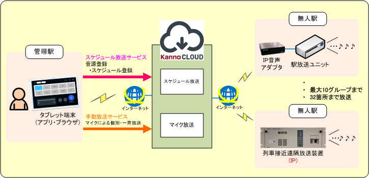 本サービスは、当社が長年培ってきた旅客案内放送システムの技術+クラウドサービスを組み合わせた次世代放送サービスです。